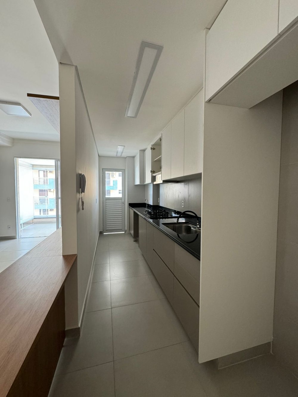 Conforto: O fechamento da varanda, a bancada da cozinha com cooktop e coifa, o ar-condicionado na suíte e a iluminação já instalada proporcionam um ambiente confortável e prático para o dia a dia.