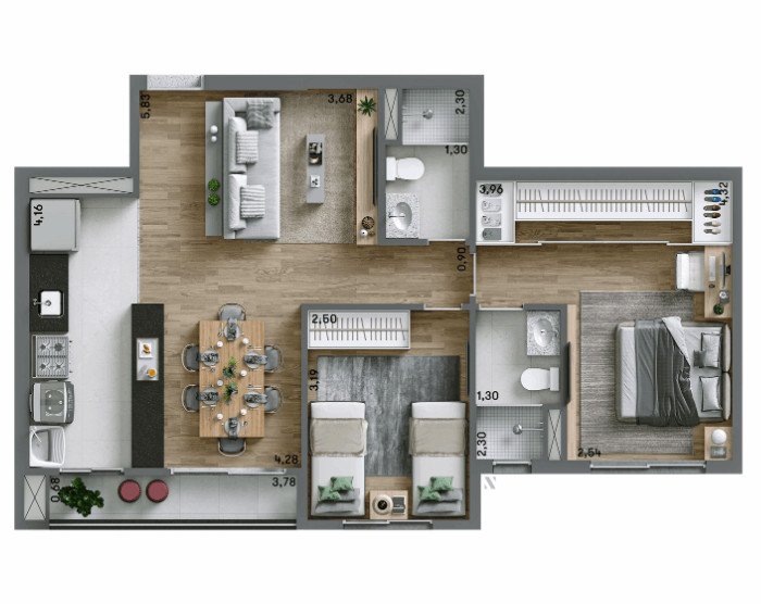 - 2 dormitórios