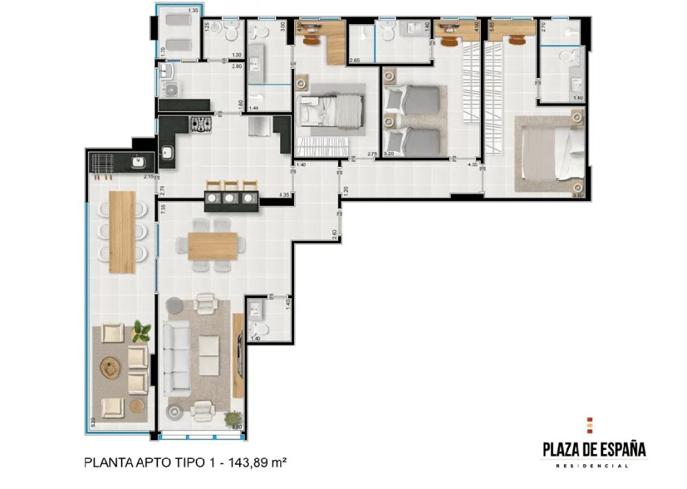 * Área Privativa: 143,00 m²
