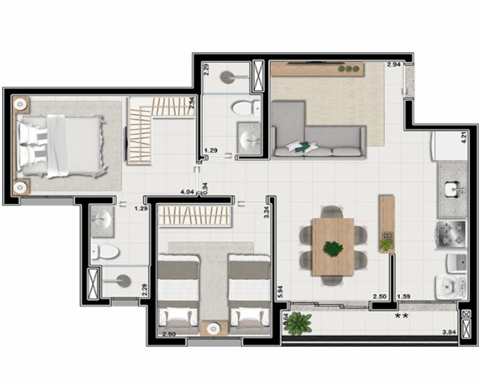 - 2 dormitórios