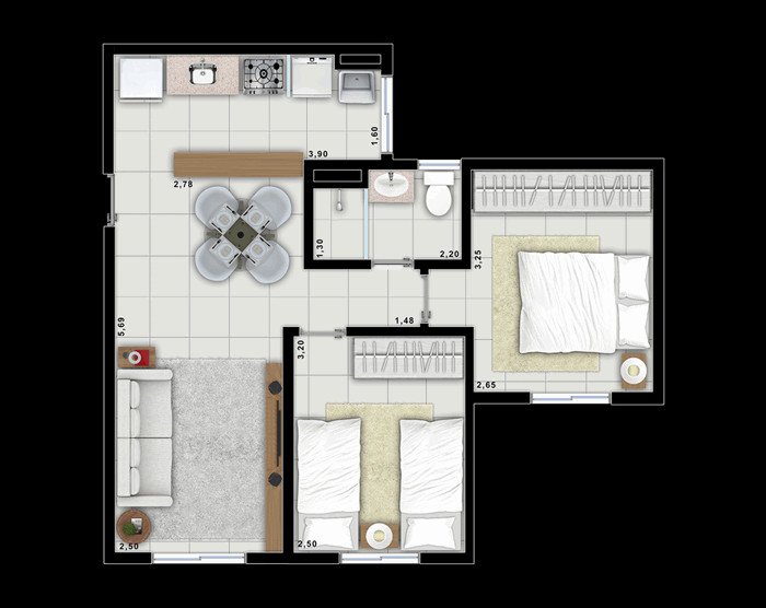 Área Total: 49,80 m² (R$ 5.220/m²)Área Privativa: 49,80 m²