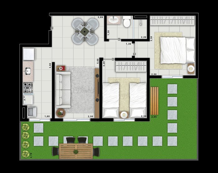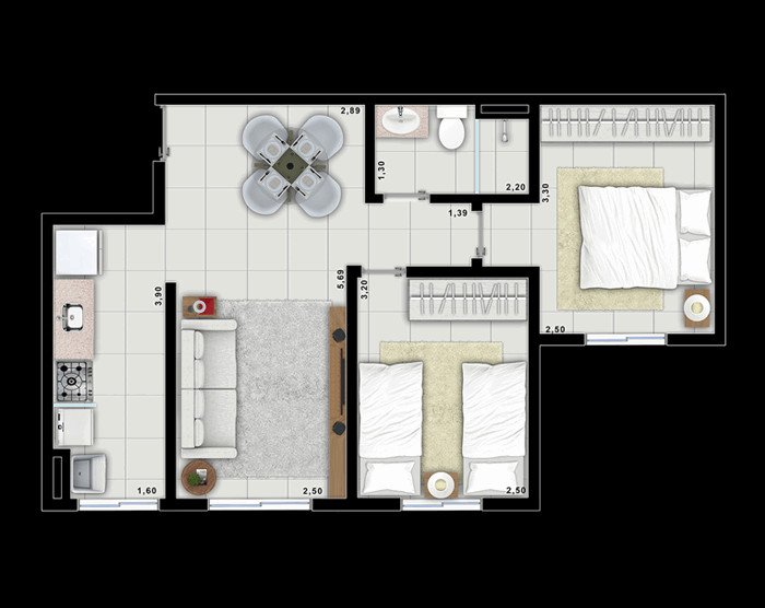 - 2 dormitórios