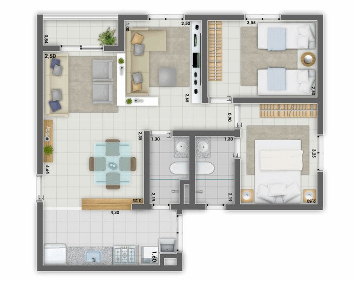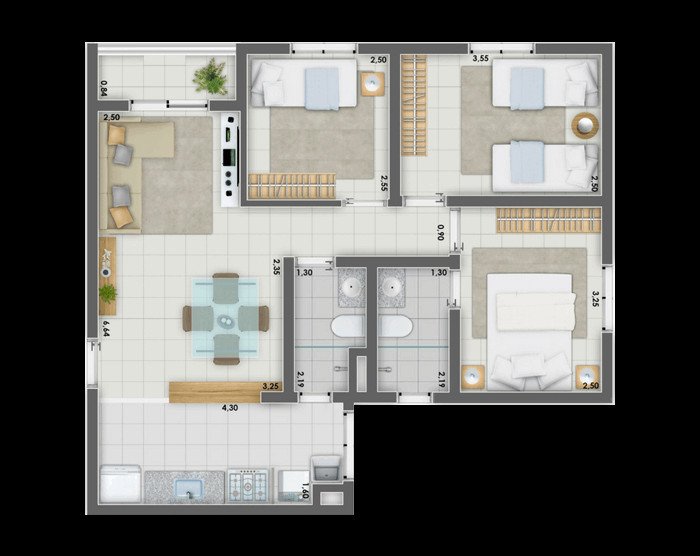 Área Total: 64 m² (R$ 5.000/m²)Área Privativa: 64 m²