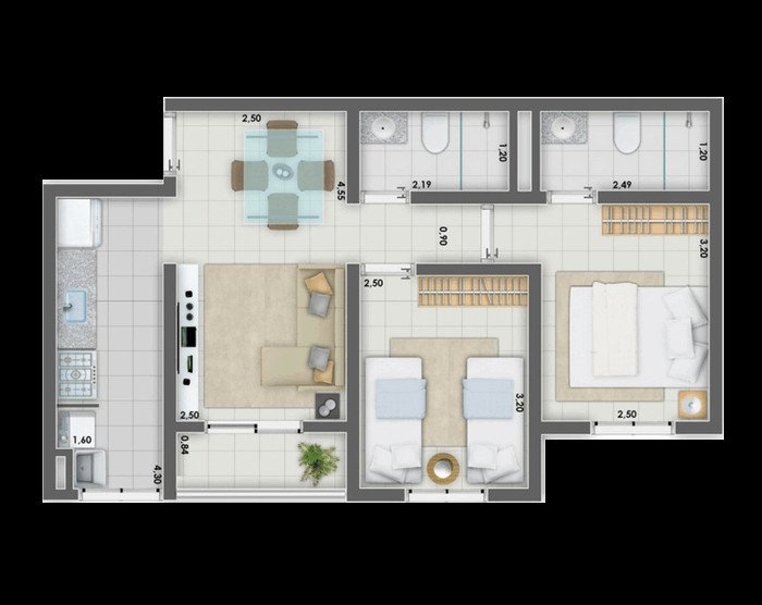 Área Total: 54 m² (R$ 5.185/m²)Área Privativa: 54 m²