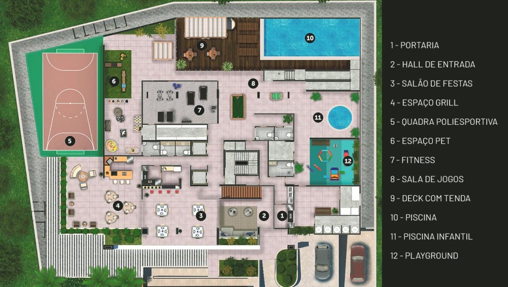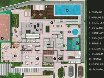 O condomínio oferece portão eletrônico, portaria 24hs, interfone, muros e grades para a segurança dos moradores. Além disso, conta com uma infraestrutura completa de lazer, incluindo academia, salão de festas, piscina, espaço gourmet, playground, churrasqueira e sala de ginástica.