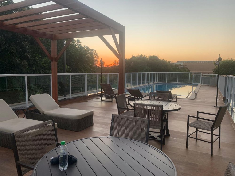 Além disso, o apartamento possui lavabo, cozinha americana, sala de jantar e uma vista panorâmica incrível. A varanda gourmet com churrasqueira é um dos destaques do imóvel, perfeita para reunir amigos e familiares em confraternizações.