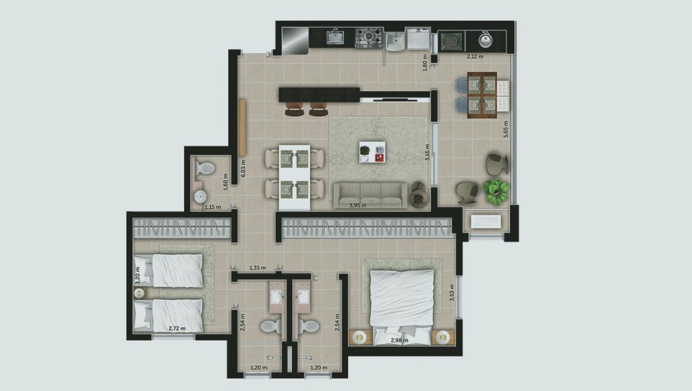 Área Total: 85 m² (R$ 8.000/m²)Área Privativa: 85 m²