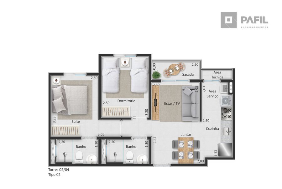 - 2 dormitórios