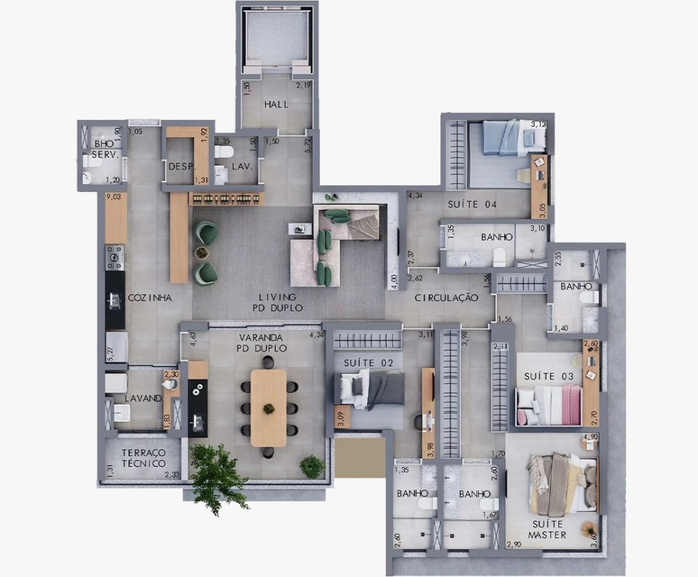 - 4 banheiros