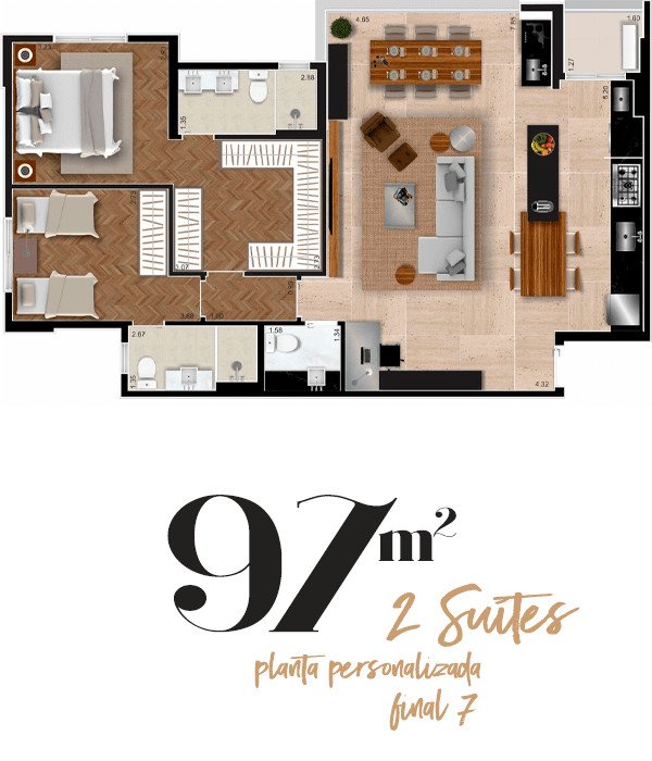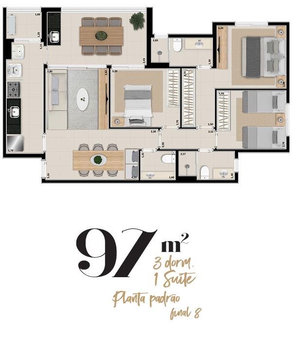 Área Total: 97 m² (R$ 9.793/m²)Área Privativa: 97 m²