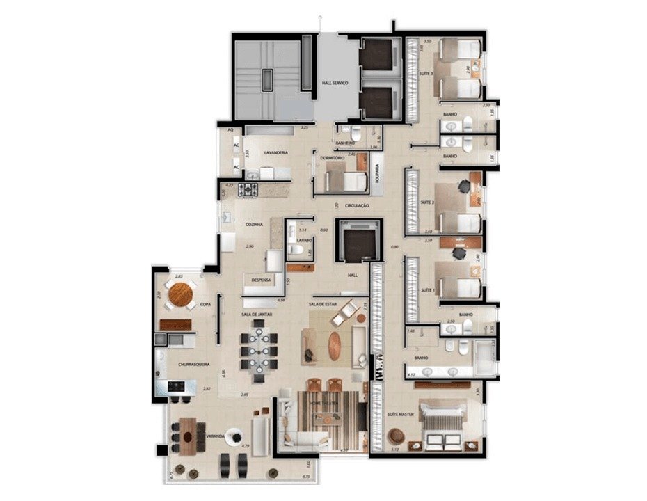Elevadores: 4 elevadores, sendo 2 sociais privativos e 2 de serviço, garantem acessibilidade e praticidade no dia a dia.