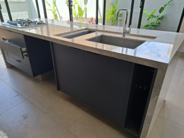 Casa térrea de ilha em condomínio fechado com 4 dormitórios, sendo 2 suítes e 2 demi-suítes.