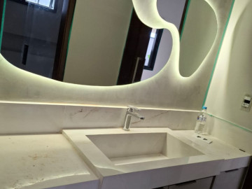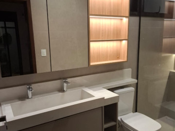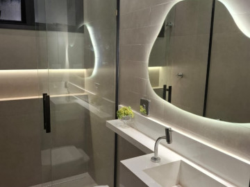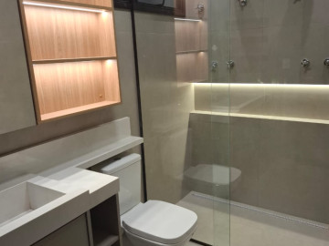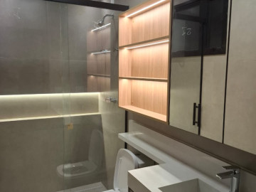 Acabamento de alto padrão com porcelanato Portinari, nichos e boiler com água quente.