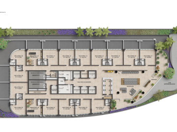 Dispõe de lobby com pé direito duplo, recepção setorizada, restaurante, salas de espera, auditório e salas com plantas personalizáveis.