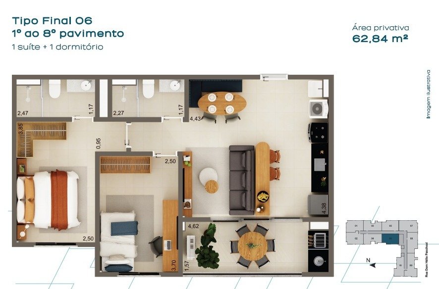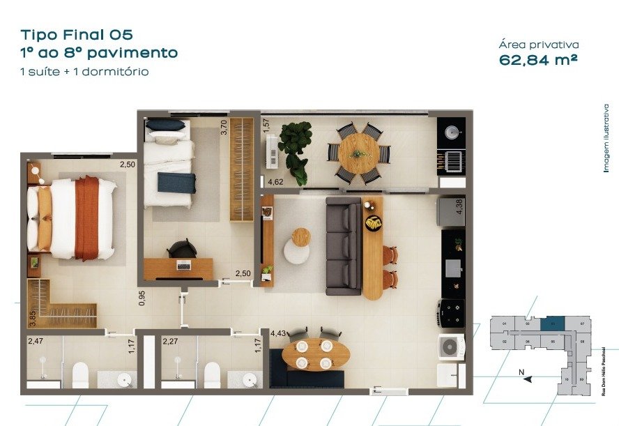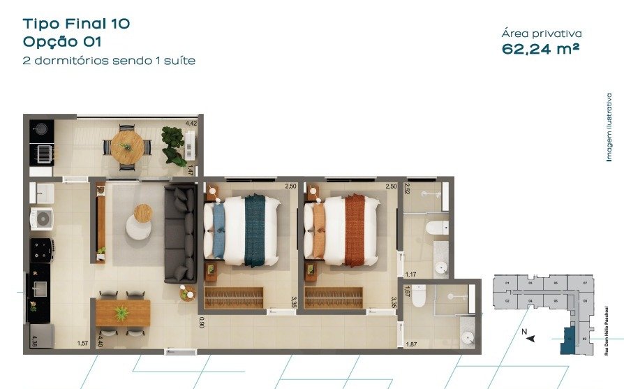 Área Privativa: 62 m²Localização
