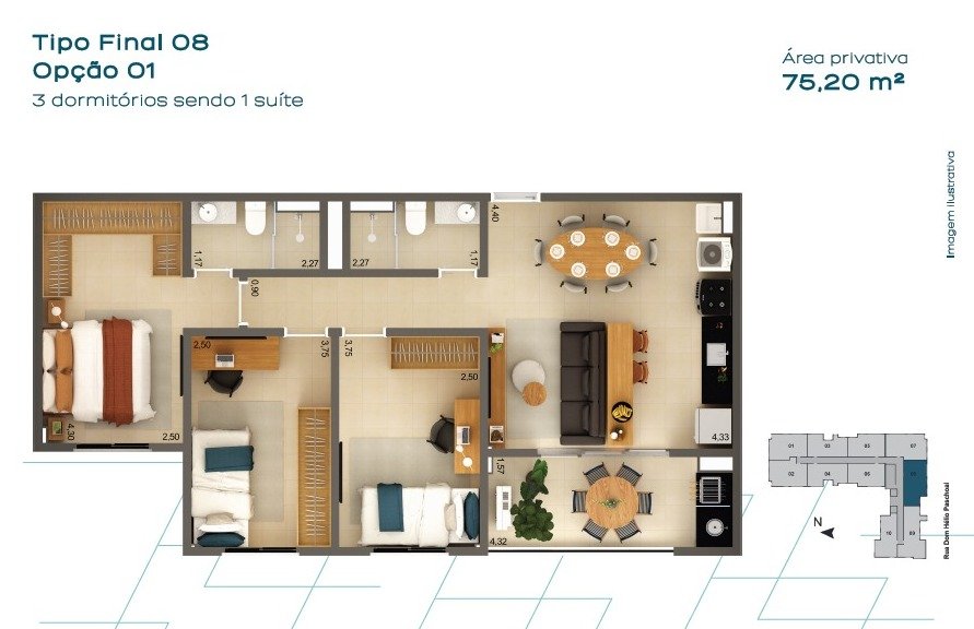 Área Privativa: 75 m²Localização