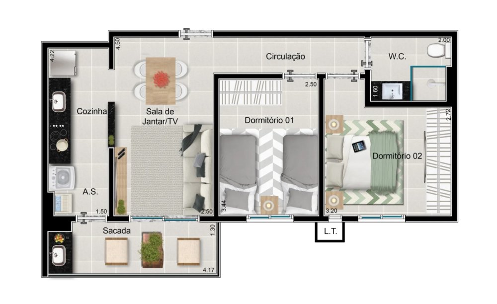 - 2 dormitórios