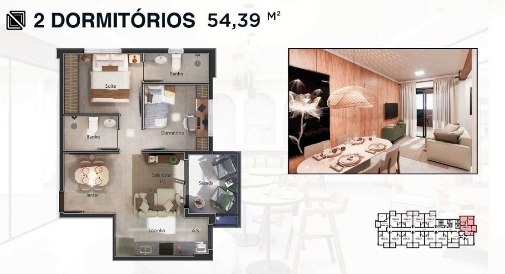 Área Privativa: 54 m²Localização