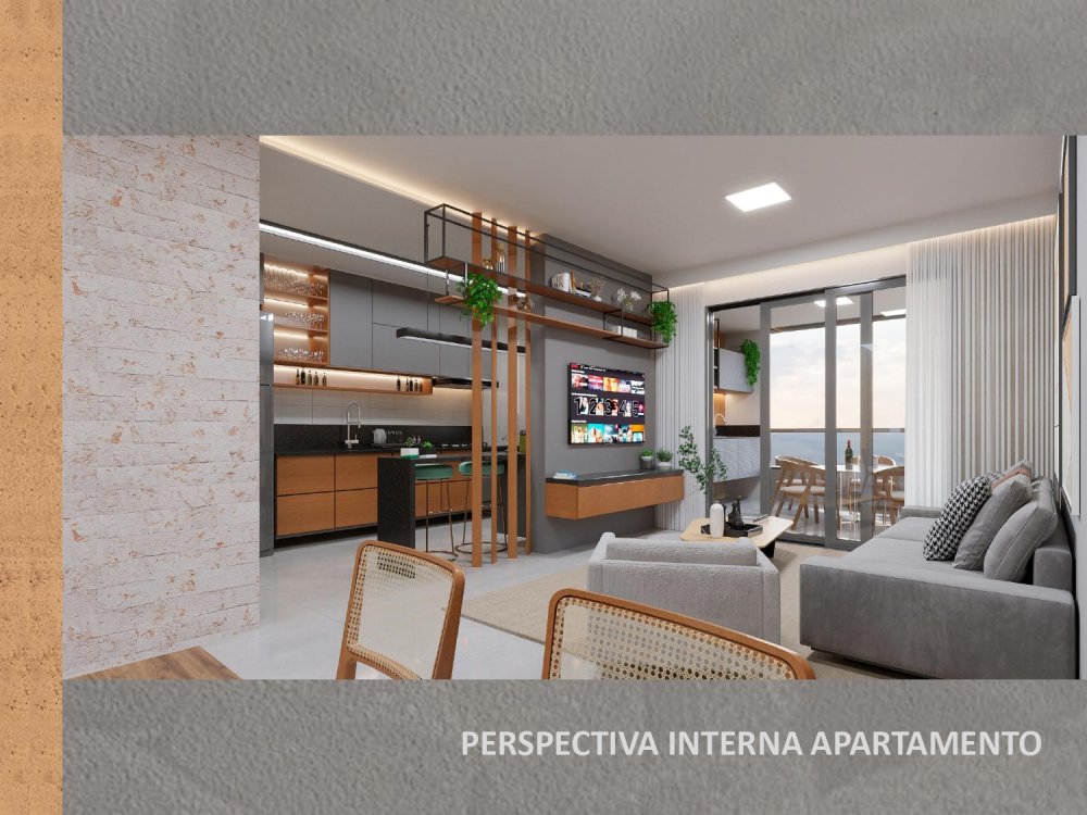 -Sala de TV e jantar integradas;