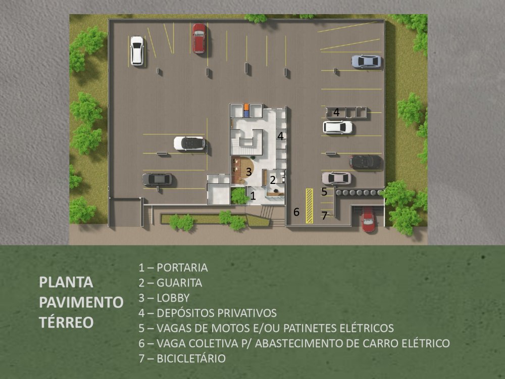 Condomínio com lazer completo: Portaria 24hs, salão de festas, espaço grill, academia, coworking, pet place e pet care, brinquedoteca, quadra, playground, lounge externo, vaga coletiva nos 3 pavimentos de garagem para abastecimento de carro elétrico e vagas de motos rotativas;