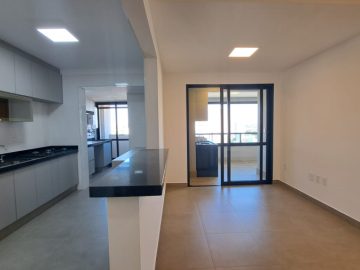 A cozinha americana integrada à área social é ideal para quem aprecia momentos de convívio e praticidade. A sacada com churrasqueira é um convite para desfrutar de momentos únicos com uma vista panorâmica da cidade.