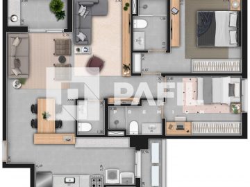 Este apartamento, com 83m² de área privativa, é um convite ao bem-estar e à praticidade. Com 3 dormitórios, sendo 1 suíte, 2 banheiros e um lavabo, oferece o espaço ideal para você e sua família desfrutarem de momentos inesquecíveis. As 2 salas proporcionam ambientes distintos para relaxar e receber amigos, enquanto a cozinha americana integra os espaços e facilita o dia a dia. A sacada com vista panorâmica é um convite para contemplar a beleza da cidade.