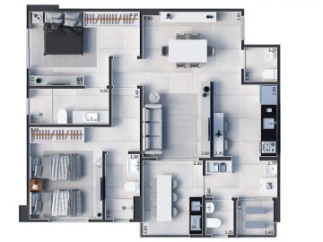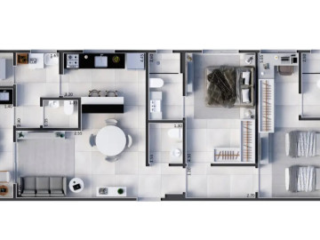 As 2 salas convidam a momentos de relaxamento e convívio social, enquanto a cozinha americana integrada permite a interação entre os ambientes, perfeita para receber amigos e familiares. E para completar, conte com 2 vagas de garagem para seus veículos.