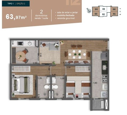 Área Privativa: 60 m²Localização
