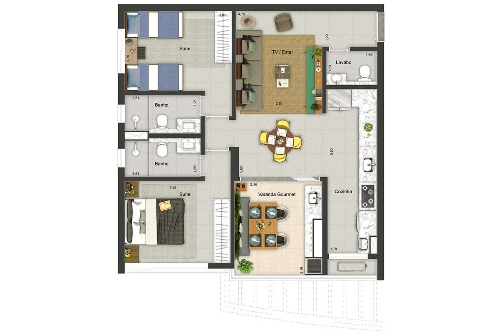 Área Total: 80 m² (R$ 9.875/m²)Área Privativa: 80 m²