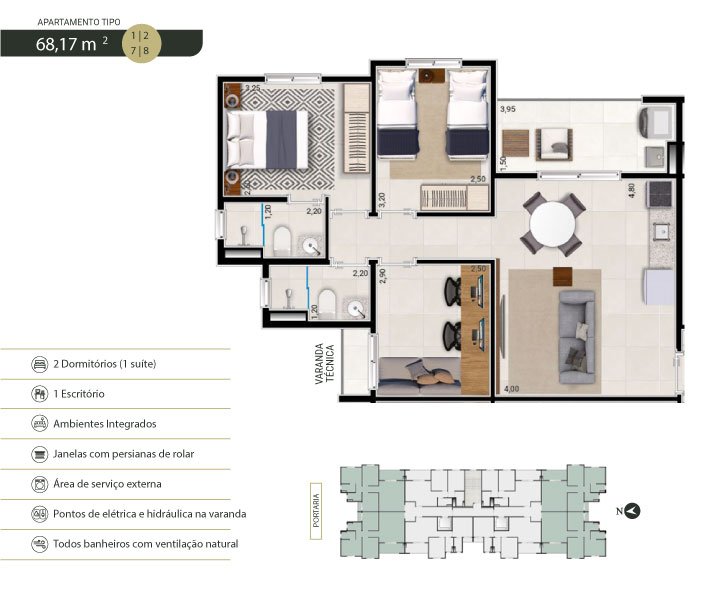 Área Total: 68 m² (R$ 5.882/m²)Área Privativa: 68 m²