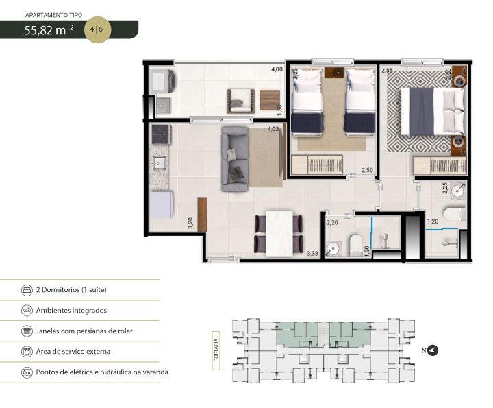 Área Total: 55 m² (R$ 5.818/m²)Área Privativa: 55 m²