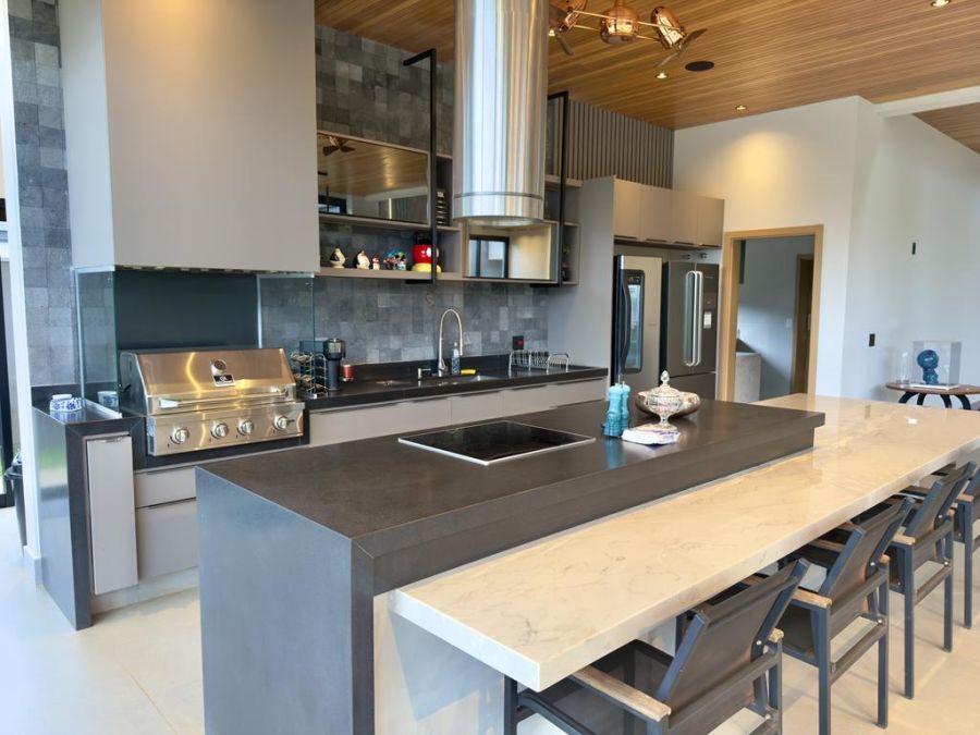 Varanda gourmet equipada com churrasqueira, perfeita para momentos de convivência
