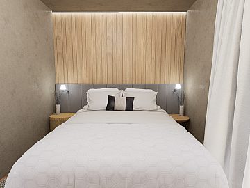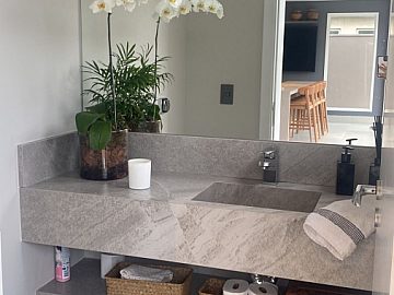 A área íntima é composta por quatro suítes amplas, cada uma desenhada para ser um refúgio de tranquilidade. Ao todo, a residência dispõe de seis banheiros e um lavabo, todos com acabamentos que refletem o padrão superior da construção. O sistema de água quente atende a todas as dependências, reforçando o cuidado com o bem-estar dos moradores.