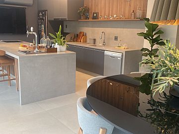 São 4 Suítes, sendo 01 Master, com closet, varanda com vista maravilhosa, Home Tv, podendo ser transformado em 4ª suíte, com vista para a piscina, Escritório, 2 Lavanderia, Excelente iluminação natural, Porcelanato no térreo e nos banheiros, Bancadas em porcelanato, 4ª suíte no térreo, que pode ser convertida em home TV, Jacuzzi 7 lugares, Piscina com aquecimento elétrico, Ambiente gourmet com churrasqueira gás e coifa Máxima Coifa , Balcão gourmet, armários na cozinha e lavanderia, Ar condicionado em toda a casa, 04 Vagas de garagem sendo 02 cobertas, Torneiras c/ misturadores Quente e Frio Válvula Hidra, Calhas embutidas, paisagismo, Caixa de água subterrânea para irrigação, Fino acabamento, Fotovoltaica, 2 Fogões de indução.