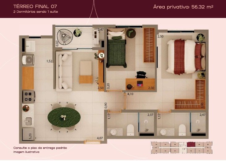 Área Privativa: 56 m²Localização