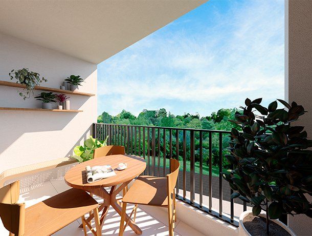 O projeto foi desenvolvido para atender à demanda por moradias modernas e funcionais. As unidades possuem 56 m² de área privativa, distribuídas em uma planta inteligente que contempla dois dormitórios, sendo uma suíte, dois banheiros e salas integradas que priorizam a circulação e a iluminação natural. O apartamento conta ainda com sacada e uma vaga de garagem.