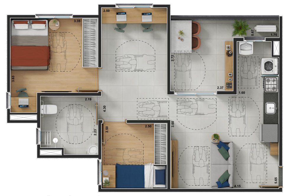 Área Privativa: 65 m²