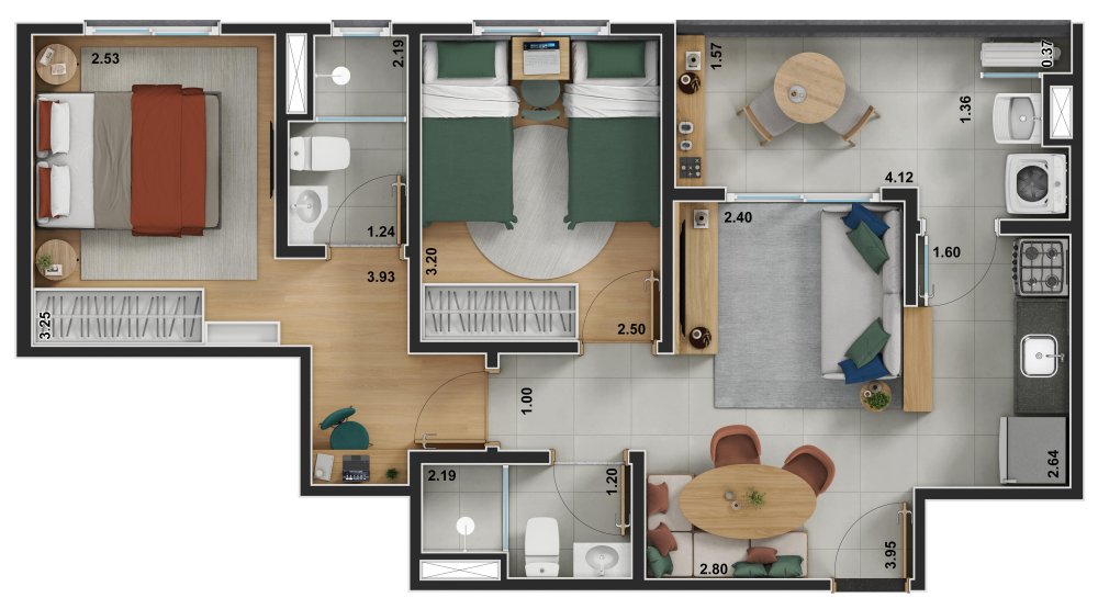 • 2 dormitórios