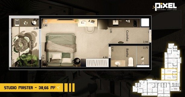 | Studio | R$ 410.000,00 | 38 m² | - | 1 | 0 | 1 | 1 |