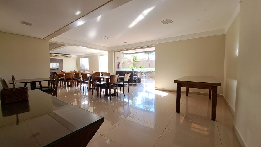 Com uma área privativa de 106,42 m², o imóvel possui uma planta inteligente e bem distribuída. Dispõe de três dormitórios, sendo uma suíte, totalizando três banheiros, o que garante conforto e privacidade para a família. O ambiente social é composto por duas salas amplas, integrando-se a uma varanda equipada com churrasqueira, item altamente valorizado no mercado imobiliário atual. O imóvel é comercializado no formato semimobiliado, o que reduz o investimento inicial necessário para a ocupação ou locação.