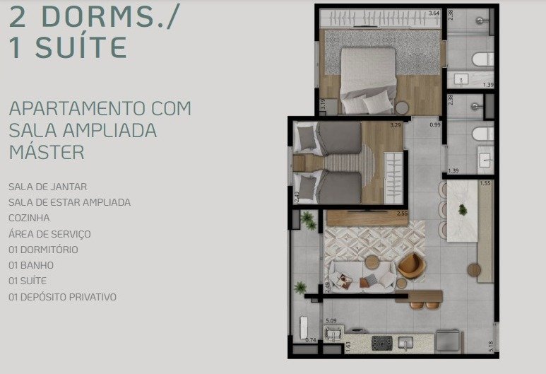 Área Total: 63 m² (R$ 7.619/m²)Área Privativa: 63 m²