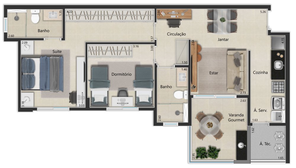| Apartamento | R$ 630.000,00 | 77 m² | - | 2 | 1 | 2 | 1 |