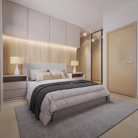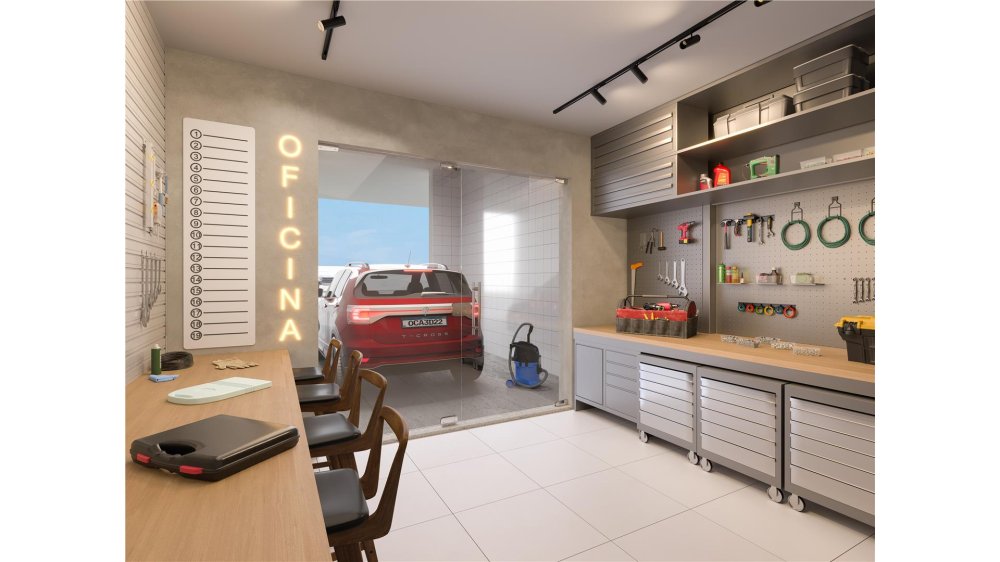 As unidades privativas possuem 87,00 m² de área útil, projetadas para otimizar o aproveitamento de cada ambiente. A planta padrão contempla três dormitórios, sendo uma suíte, e dois banheiros sociais. A área social é composta por duas salas integradas, que se conectam a uma cozinha em estilo americano, favorecendo a amplitude visual e a convivência. O projeto valoriza o lazer privativo com uma varanda equipada com sacada gourmet e churrasqueira. Cada apartamento possui direito a duas vagas de garagem.