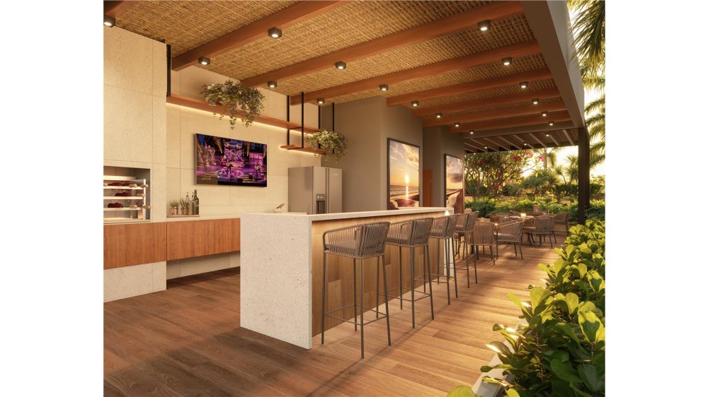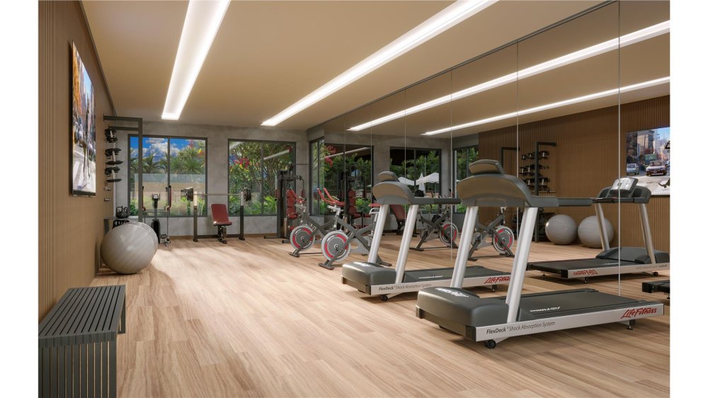 * Bem-estar e Saúde: Academia equipada, piscina e jardins planejados.
