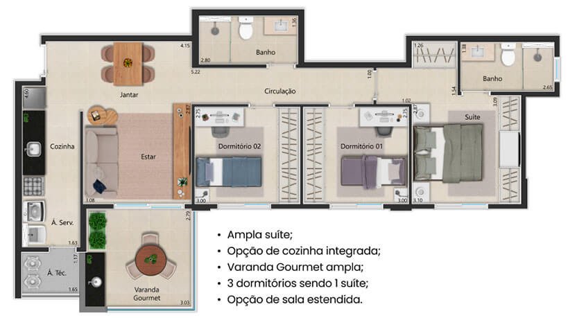 * Comodidades: Bicicletário, espaço de beleza, área de serviço e elevadores de última geração.