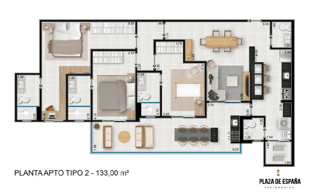 Com uma área total de 200m² e 133m² de área privativa, este apartamento decorado é um convite ao bem-estar. Possui 3 dormitórios, todos eles suítes, proporcionando privacidade e conforto para toda a família. As 4 espaçosas salas, juntamente com o lavabo, criam ambientes perfeitos para receber amigos e familiares, ou simplesmente relaxar após um longo dia.