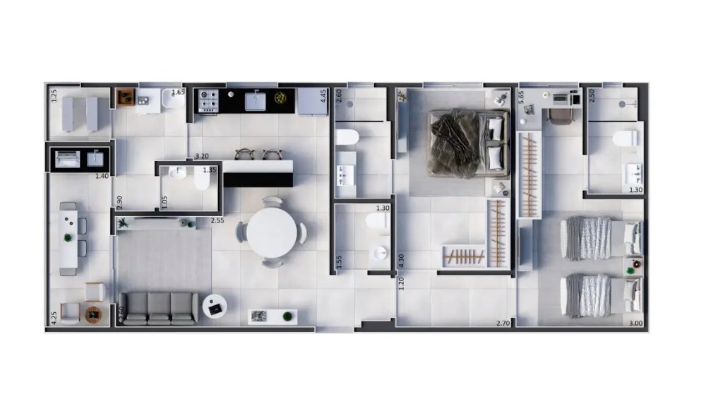 O apartamento oferece um layout moderno e funcional, com destaque para: